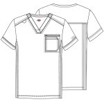 This flattering and functional men's fit V-neck top offers rib knit insert at neck, side rib knit panels for lasting comfort and shoulder yokes with a bungee loop to hold your i.d. badge at wearer's right side.